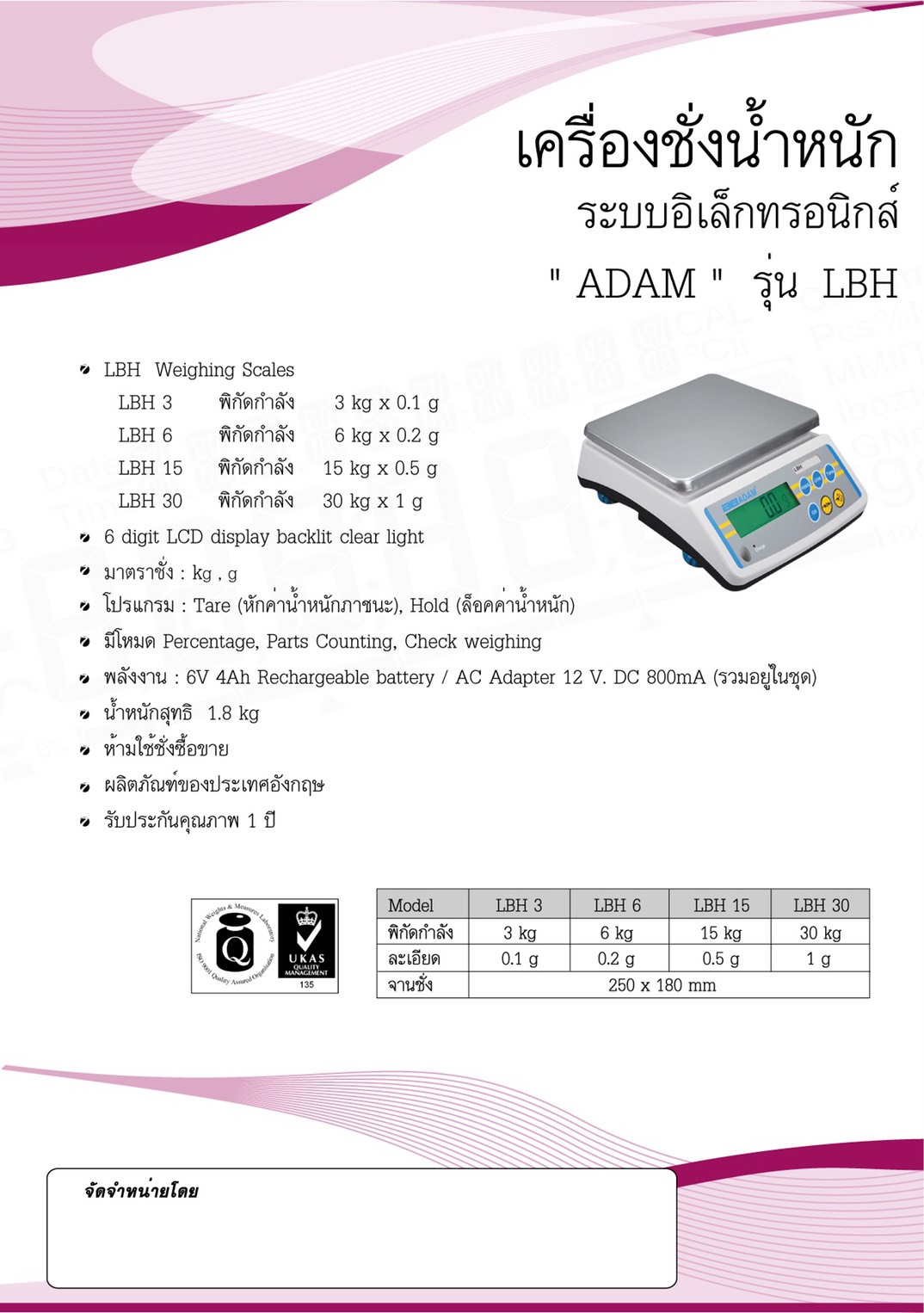 LBX-H 6kg ยี่ห้อ ADAM 6000g/0.2g0.00 บาท
